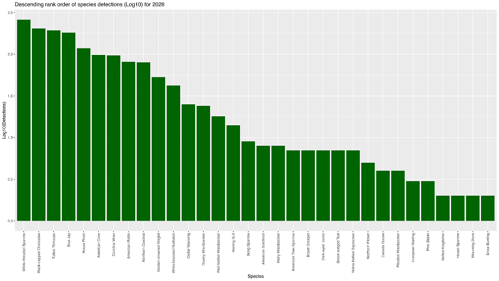 Rank order species detections (Log10)