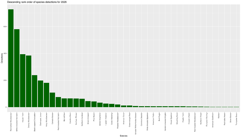 Data are filtered to limit detections to one per quarter hour per species