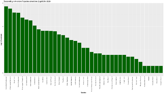 Rank order species detections (Log10)