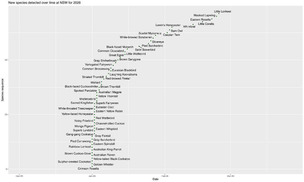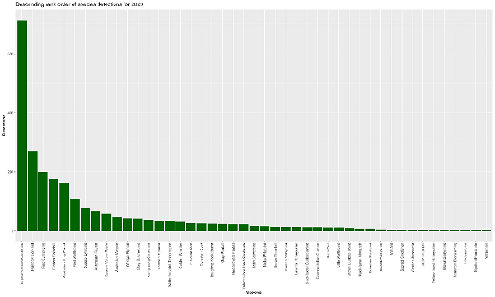 Data are filtered to limit detections to one per quarter hour per species